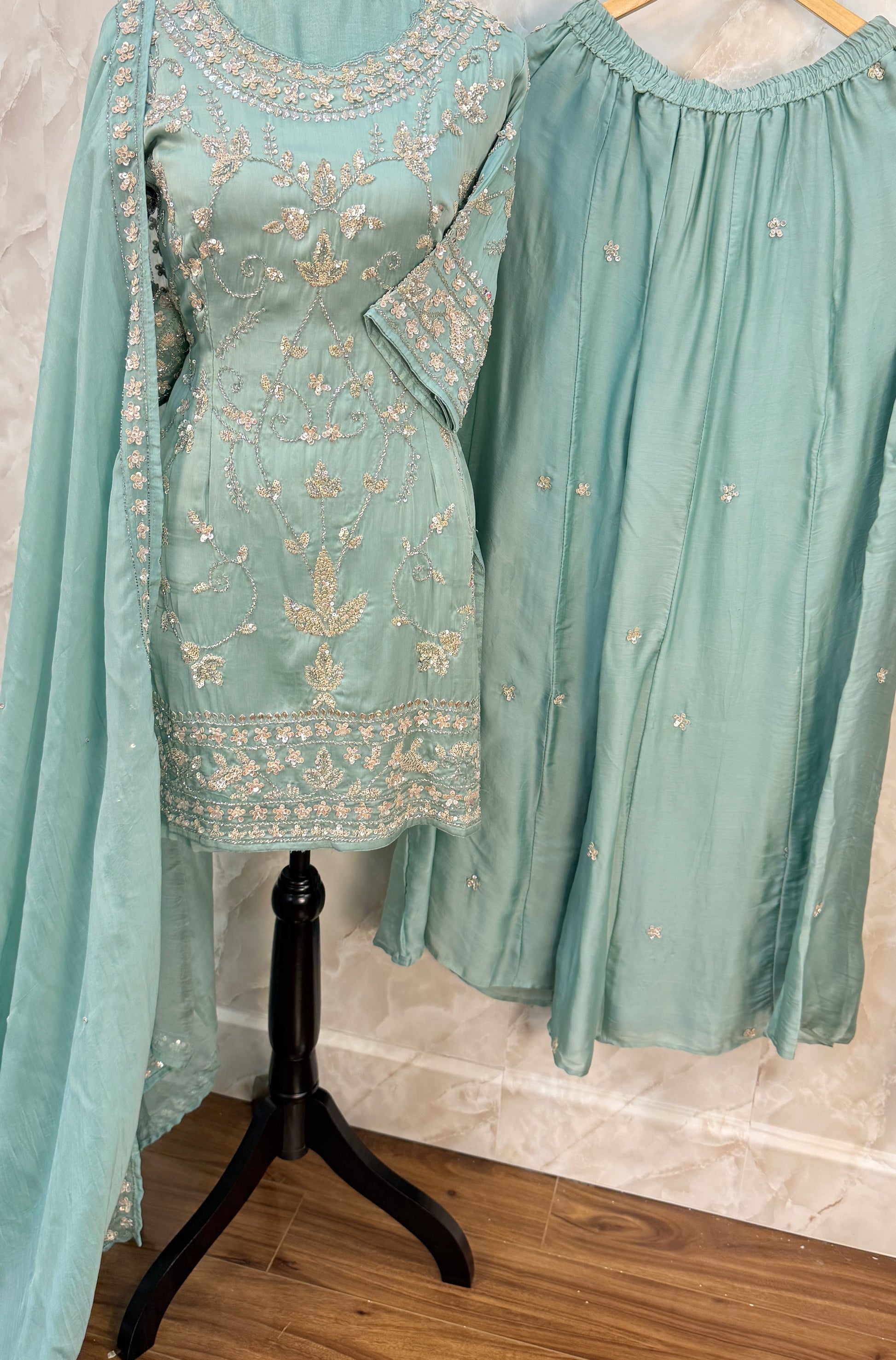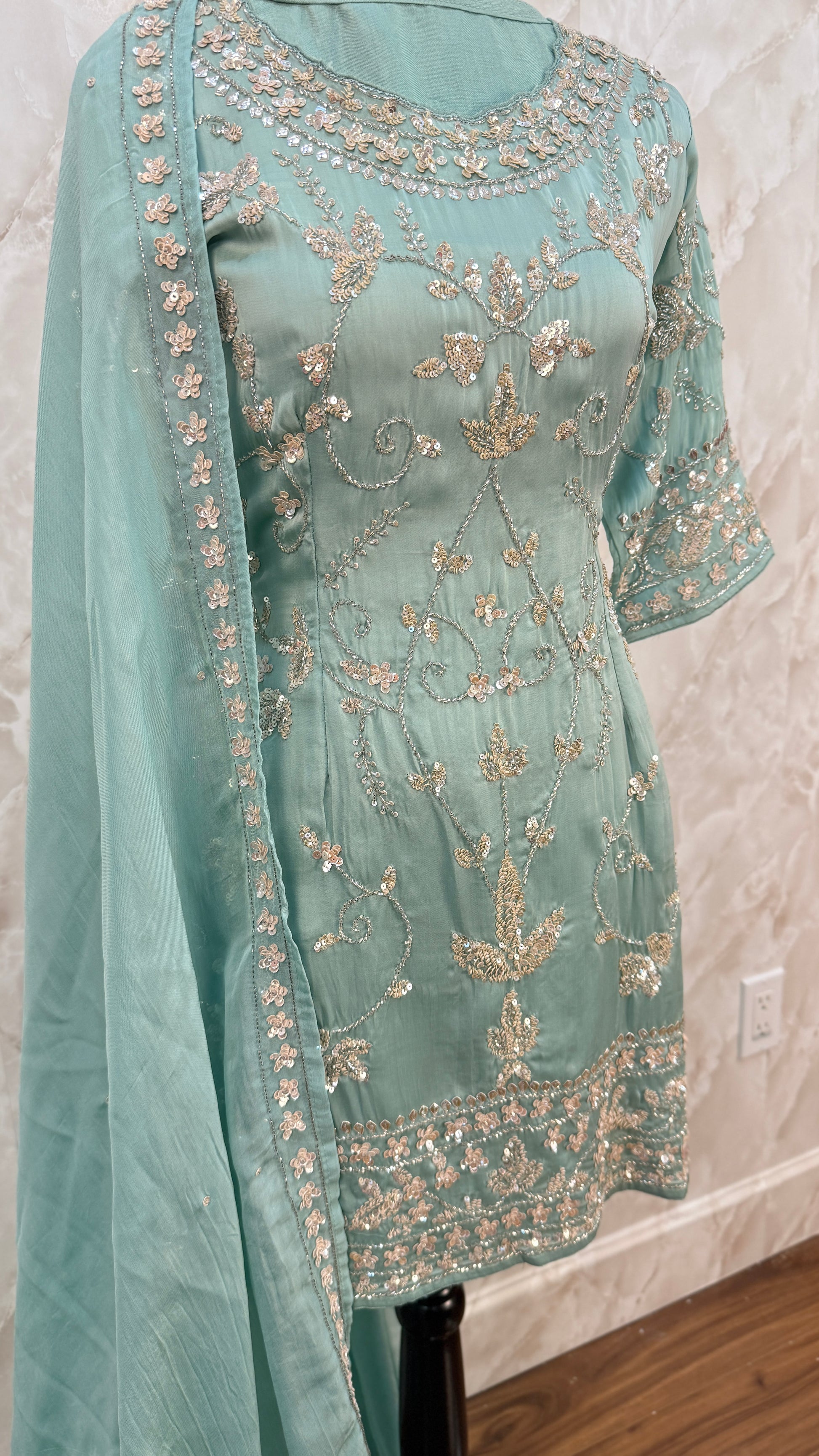 Increase quantity for Pure organza satin party wear sharar suit